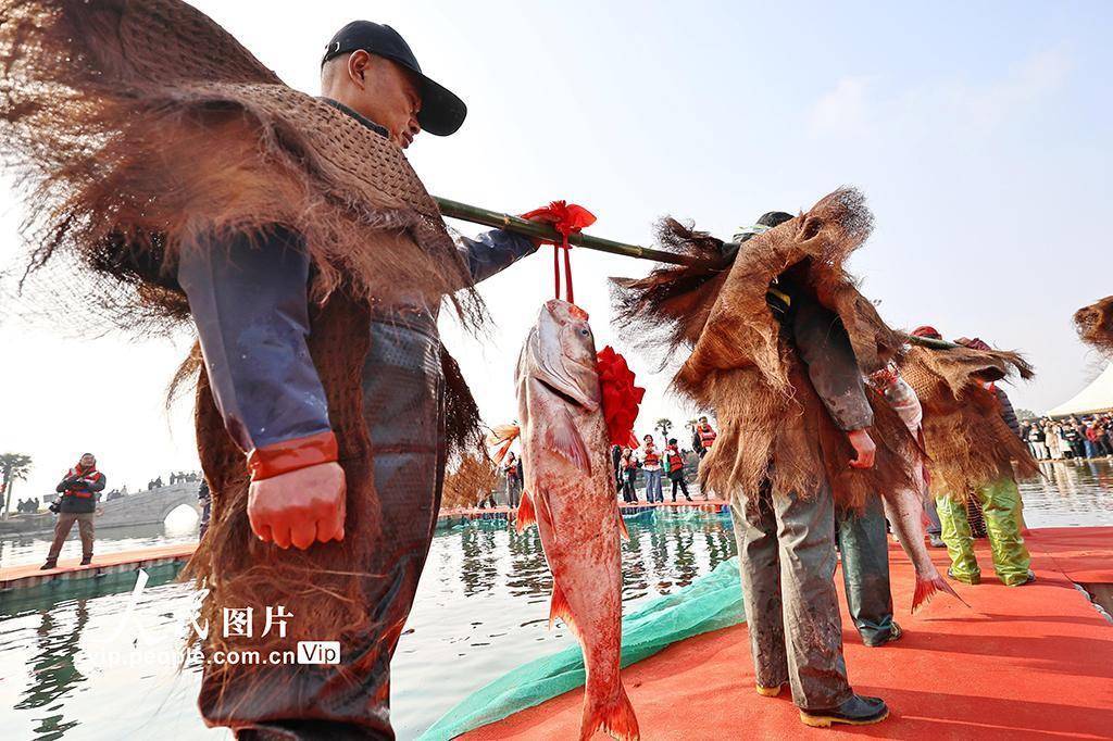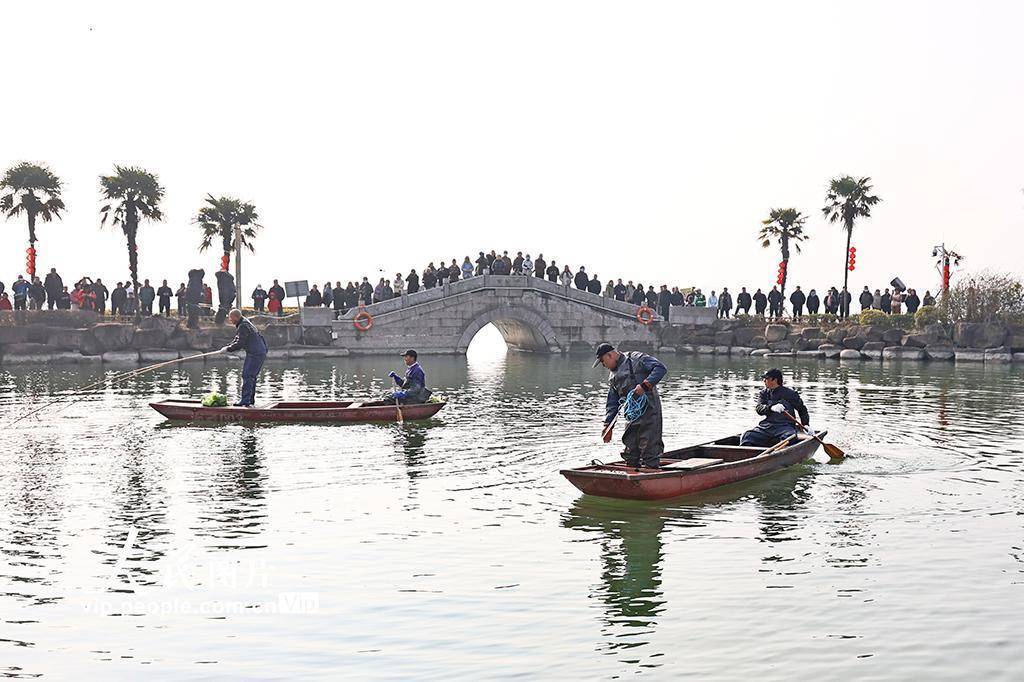 2026年2月1日,浙江嘉兴南湖区“鱼乐迎新岁·福聚湘家荡”新春嘉年华启幕,传统捕鱼、鱼王拍卖、年货市集等系列活动吸引众多市民参与。金鹏摄(人民图片网)